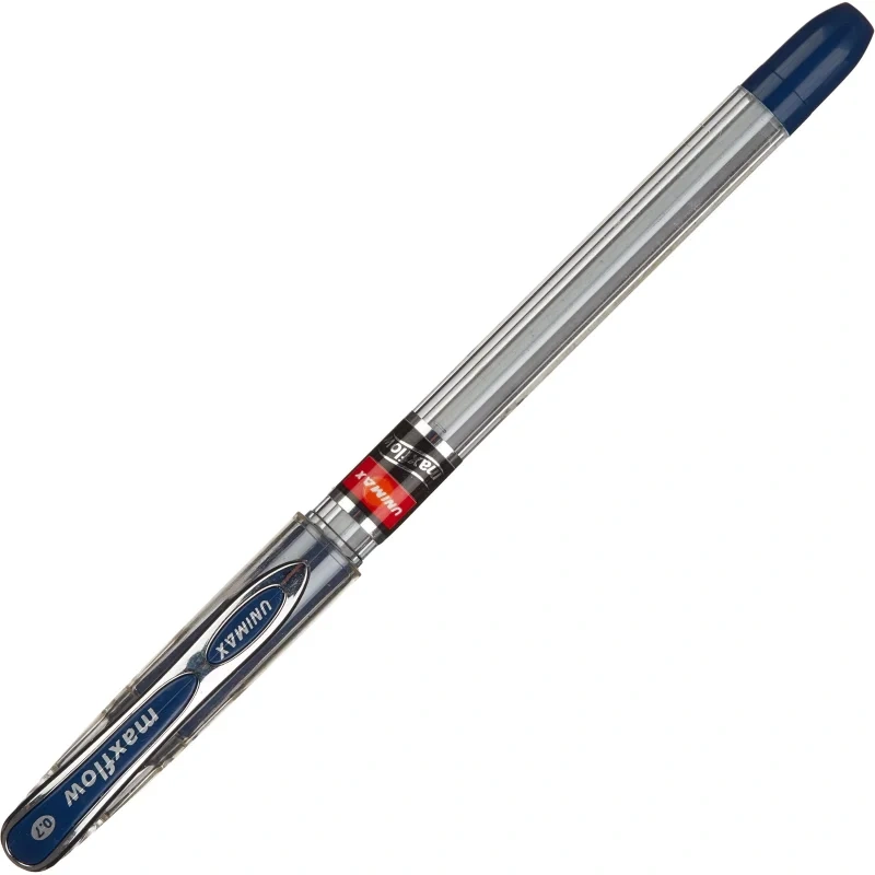 Ручка шариковая Unomax (Unimax) Max Flow в прозрачном пластиковом корпусе с колпачком. Комплектуется стержнем с синими чернилами, позволяющим наносить линии толщиной 0,5 мм. Заправлена масляными чернилами, которые обеспечивают мягкое и аккуратное письмо. Ручка, созданная по революционным технологиям с использованием материалов высшего качества, обеспечивает мягкое и качественное письмо за счет использования чернил низкой вязкости Visco Fluid Ink на масляной основе. Сочетание уникальных технологий производства чернил и пишущего узла позволяет писать на 20% дольше без пропусков и помарок при минимальном давлении на ручку. Манжетка из антибактериального эластомераHV-65 производства Santoprin (США) обеспечивает удобный захват ручки и комфорт во время письма. Ручка также предназначена для левшей. Расходные материалы для данной ручки не представлены в ассортименте производителя и в ассортименте компании Комус.