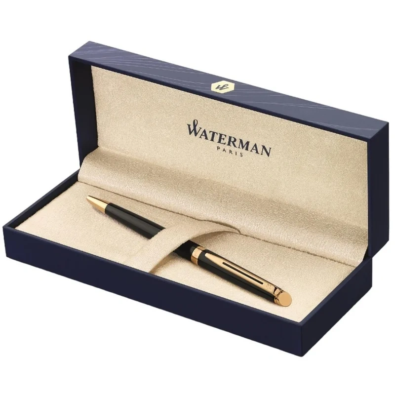 Шариковая ручка Waterman коллекции Hemisphere в подарочном футляре. Корпус черного цвета с лаковым покрытием выполнен из латуни, декоративные детали покрыты