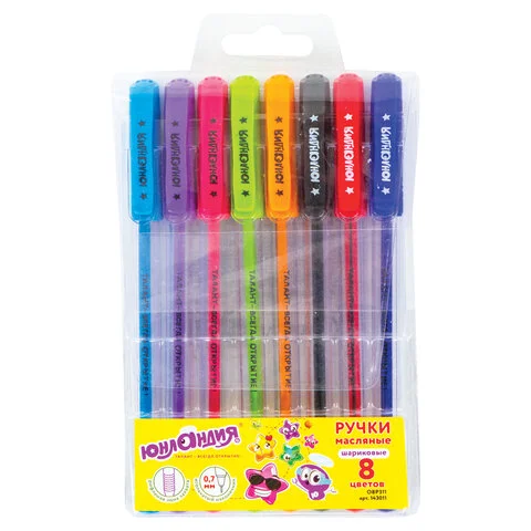 Набор шариковых ручек Юнландия Star 8 цветов, 0.35мм