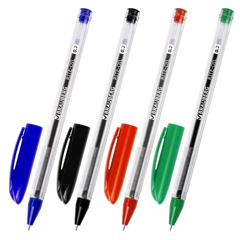 Набор шариковых ручек Brauberg Rite-Oil 4 цвета, 0.35мм, 4шт/уп, прозрачный корпус