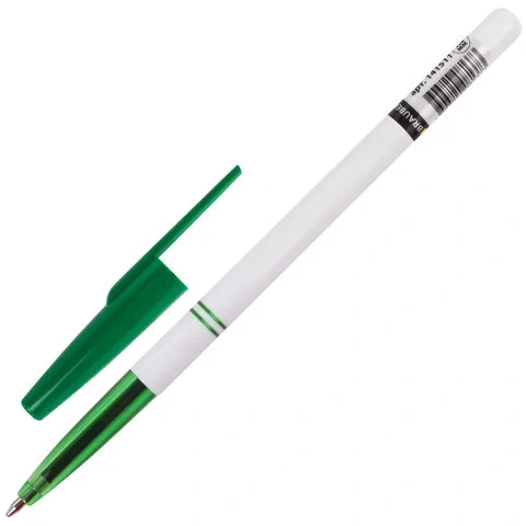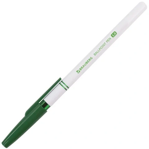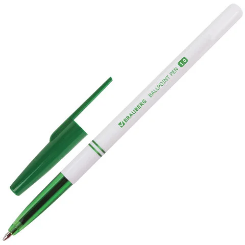 Шариковая ручка Brauberg Офисная зеленая, 0.5мм, белый корпус