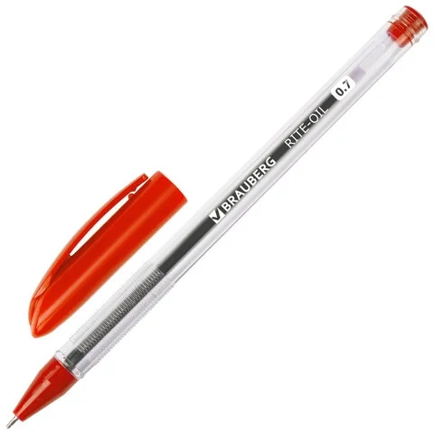 Шариковая ручка Brauberg Solar синяя, 1мм, оранжевый корпус