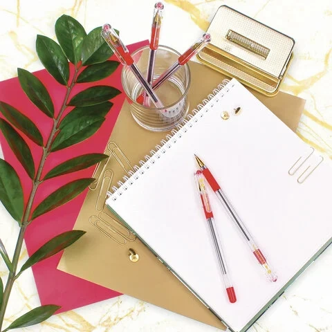 Ручка шариковая Officespace красная, 0.7мм, прозрачный корпус, одноразовая