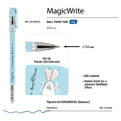 Шариковая ручка Bruno Visconti MagicWrite синяя, 0.3мм, Зайка