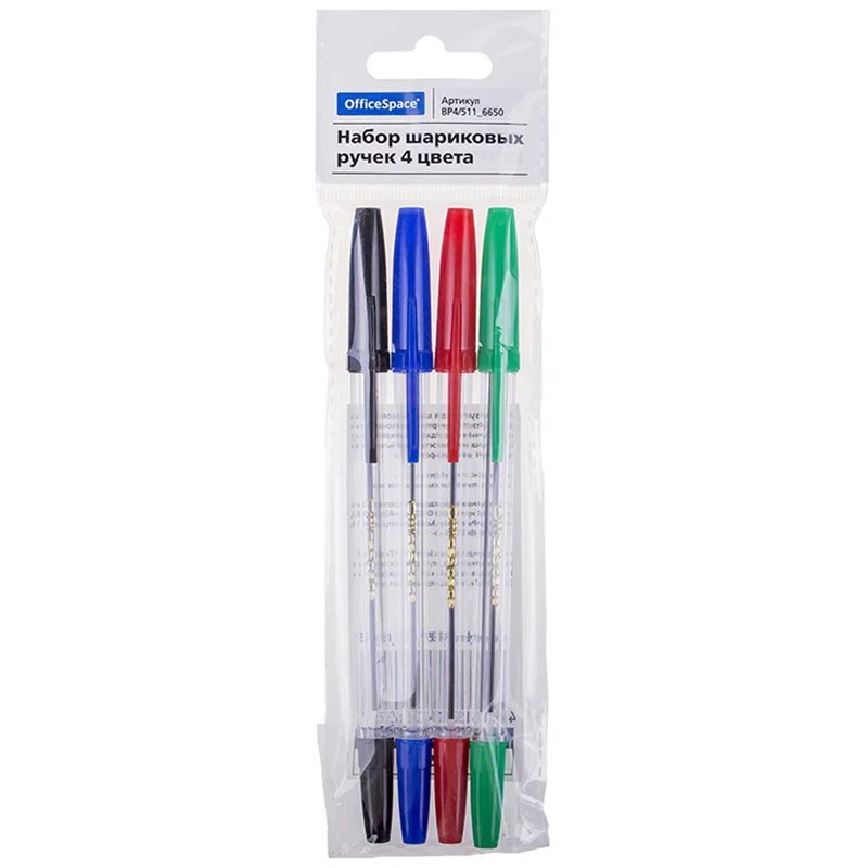 Набор шариковых ручек Officespace 4 цвета, 1мм, 4шт/уп