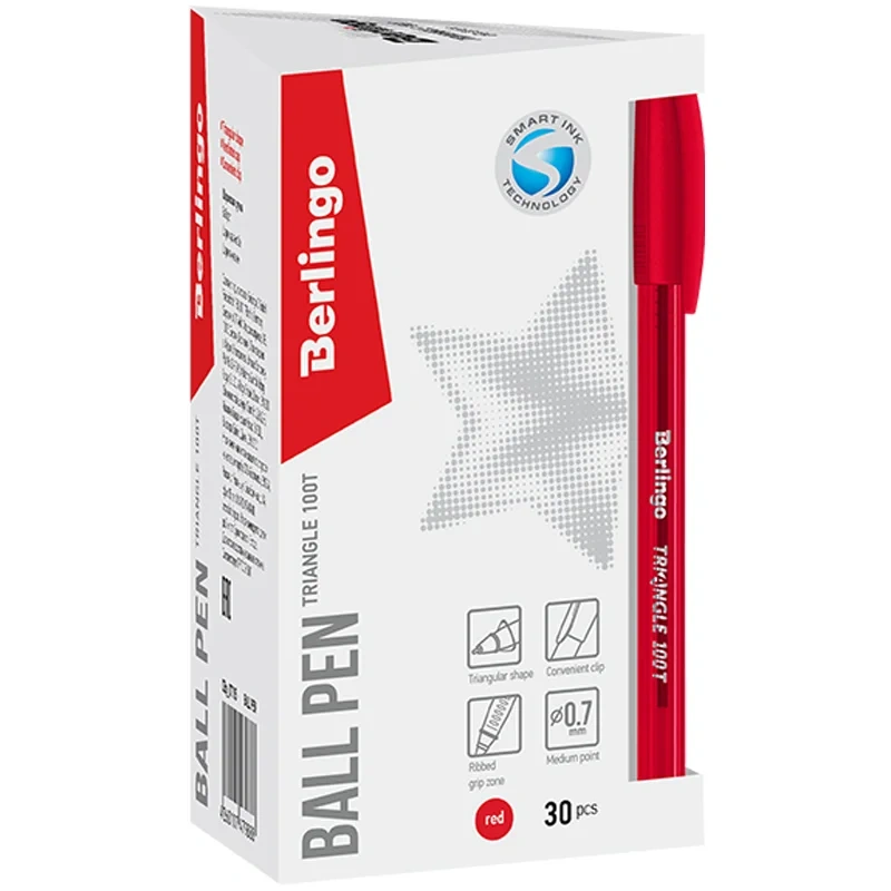 Ручка шариковая Berlingo Triangle 100T красная, 0.7мм, одноразовая