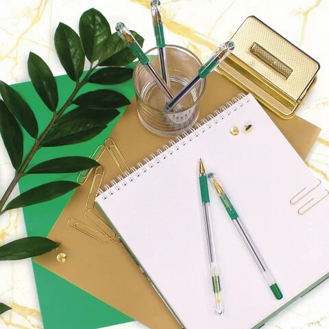 Ручка шариковая Munhwa MC Gold зеленая, 0.5мм, прозрачный корпус