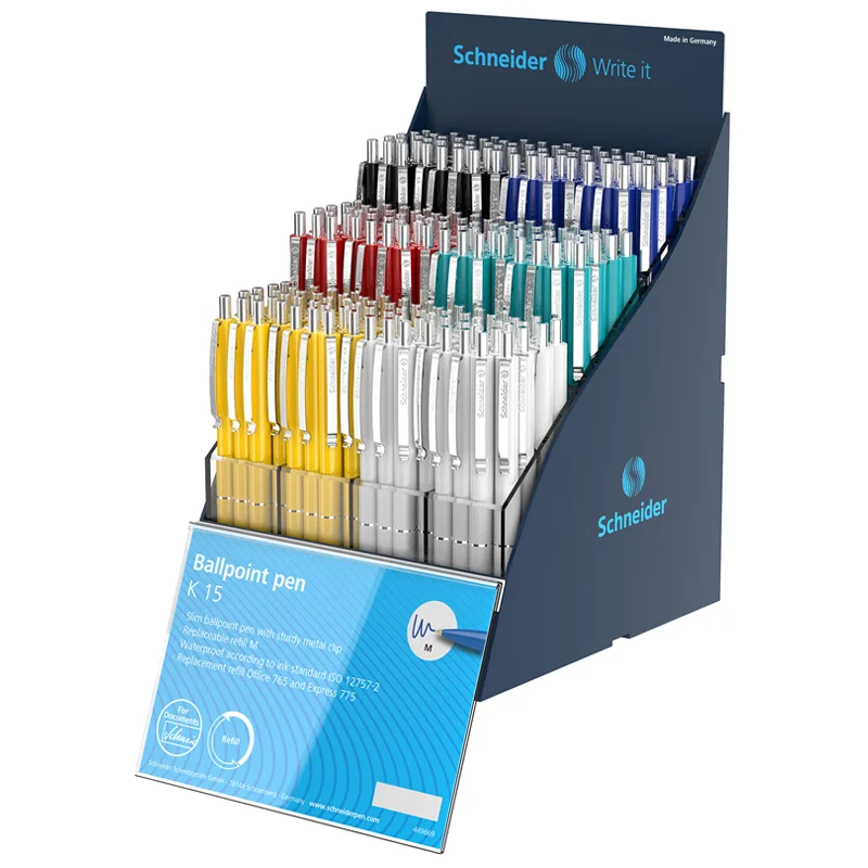 Шариковая ручка автоматическая Schneider K15 синяя, 1мм, корпус ассорти