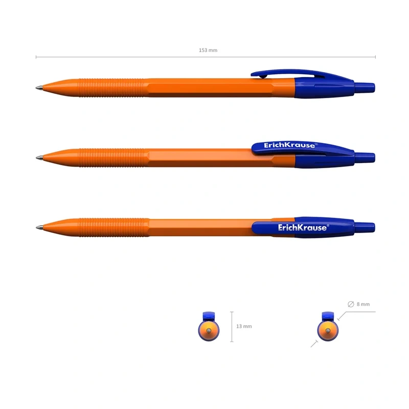 Шариковая ручка автоматическая Erich Krause R-301 Orange Matic синяя, 0.7мм, оранжевый корпус