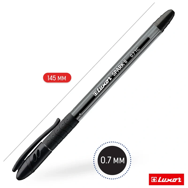 Шариковая ручка Luxor Spark II черная, 0.7мм, прозрачный корпус