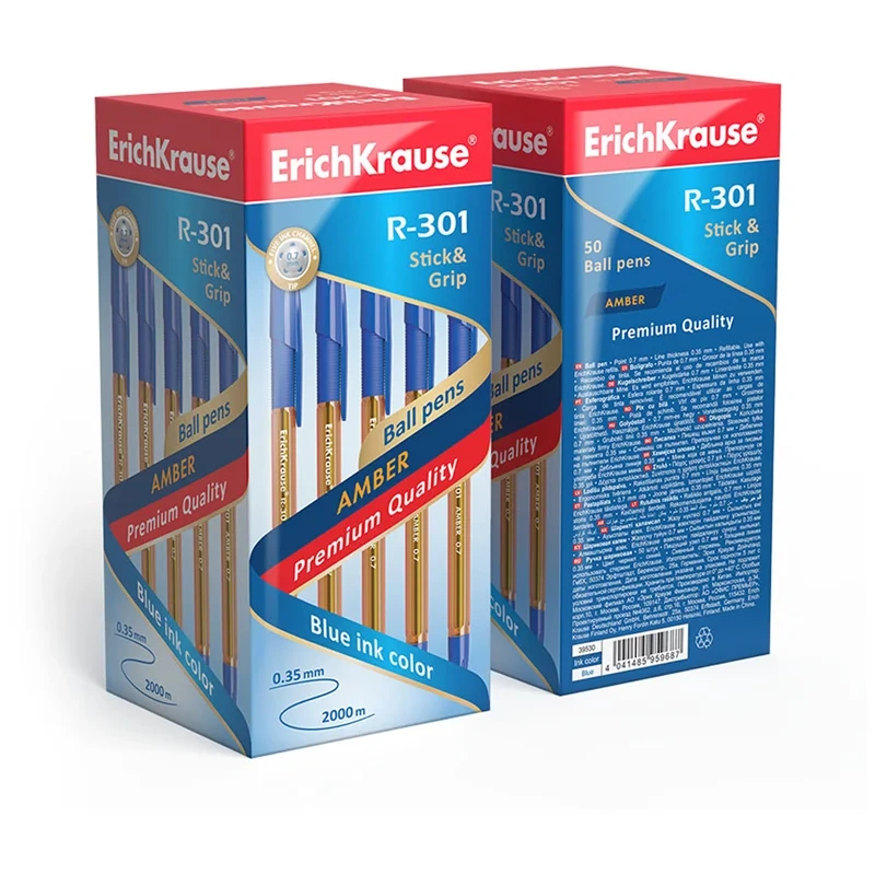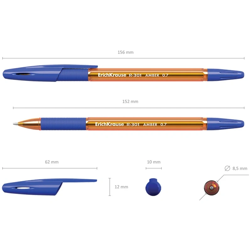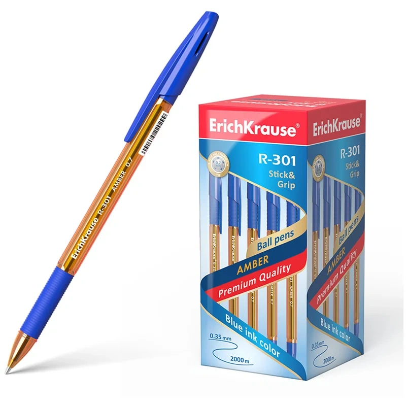 Шариковая ручка Erich Krause R-301 Amber синяя, 0.7мм, 39530