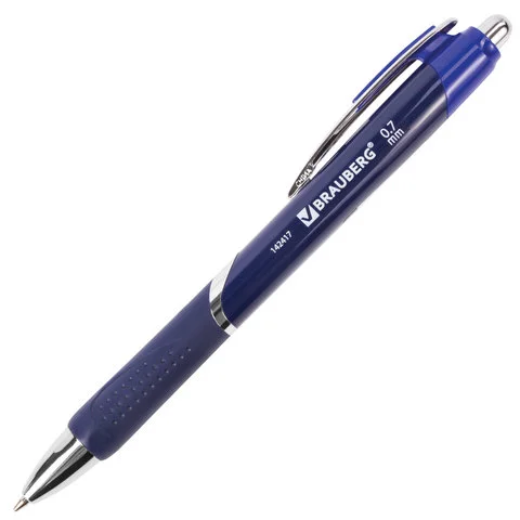 Шариковая ручка автоматическая Brauberg Dash синяя, 0.7мм, синий корпус