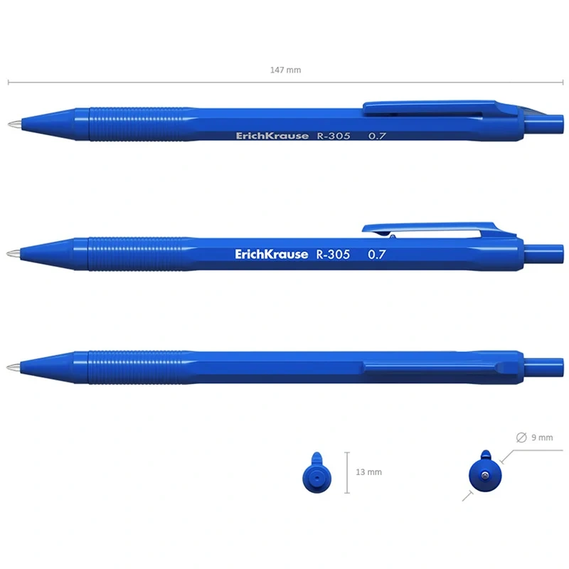 Шариковая ручка автоматическая Erich Krause R-035 синяя, 0.7мм, синий корпус