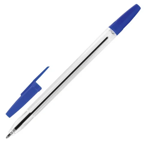 Шариковая ручка Staff Basic синяя, 0.3мм, прозрачный корпус, одноразовая