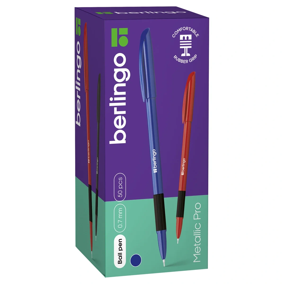 Шариковая ручка Berlingo Metallic Pro синяя, 0.7мм, корпус ассорти, одноразовая