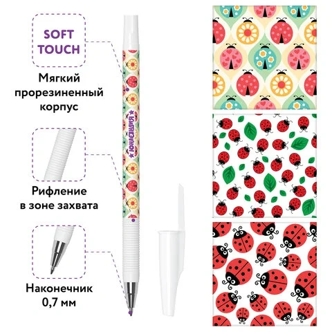 Ручка шариковая Юнландия Ladybird синяя, 0.35мм, корпус ассорти