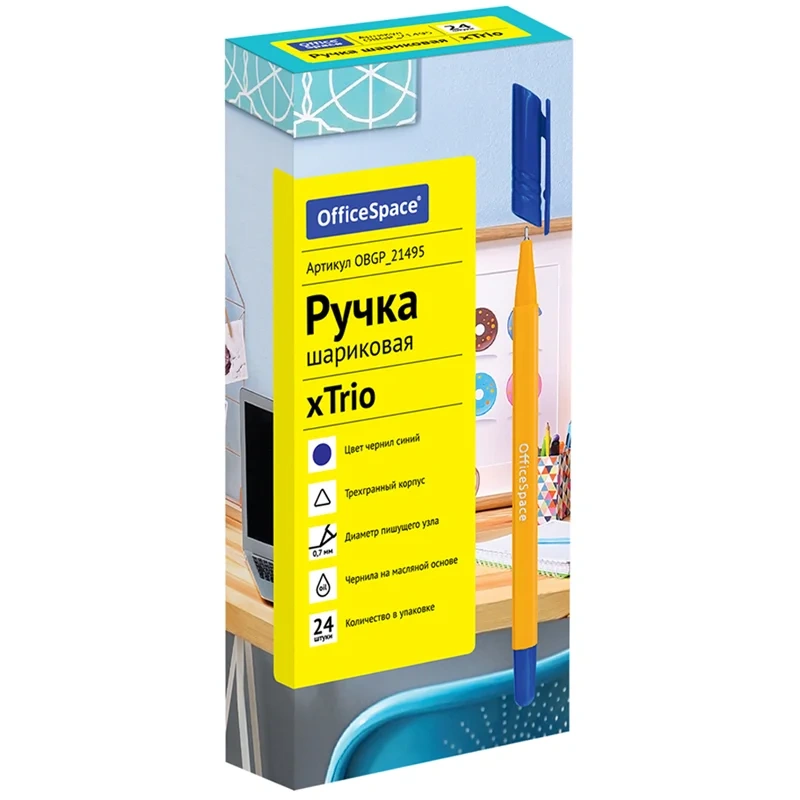 Шариковая ручка Officespace xTrio синяя, 0.7мм, желтый корпус, на масляной основе
