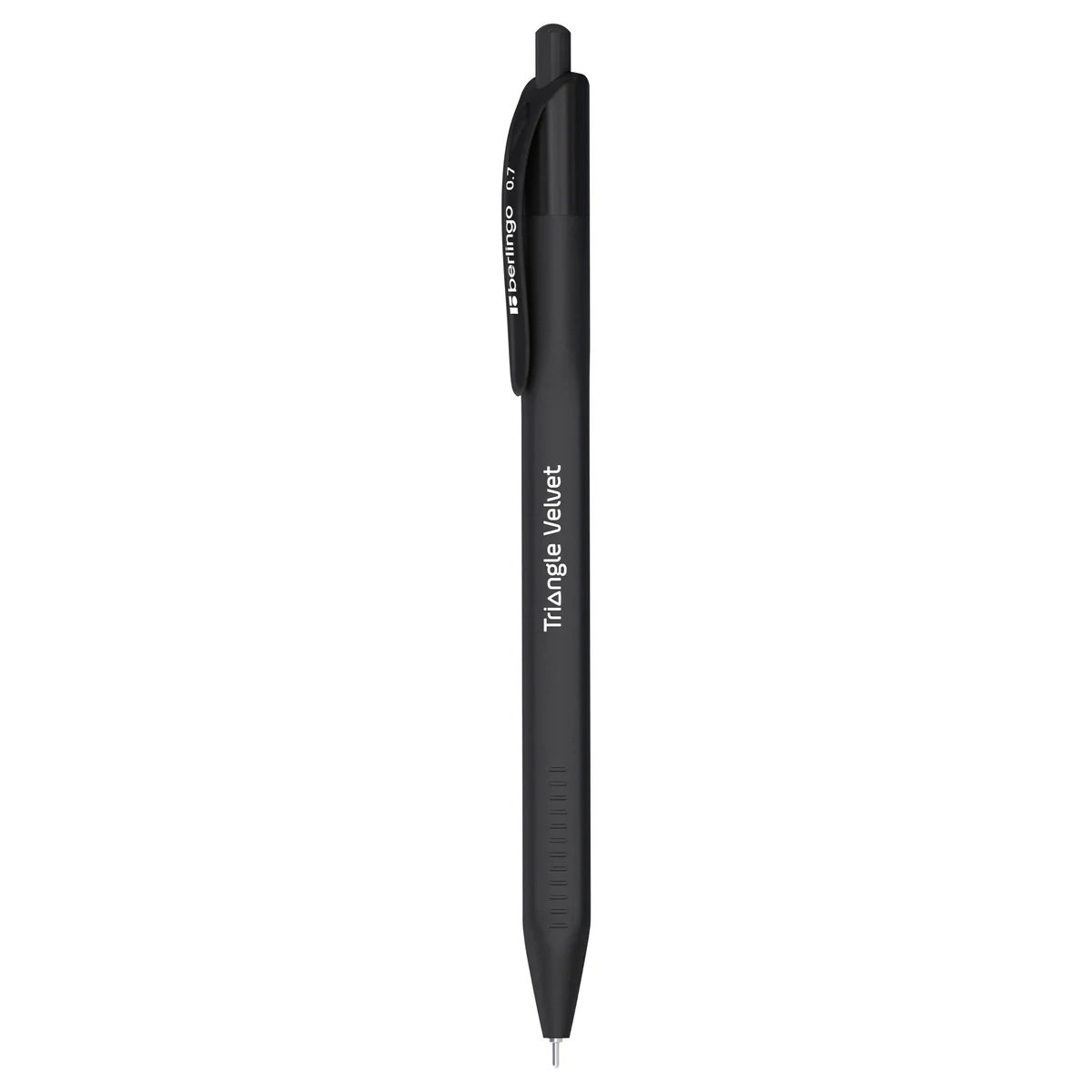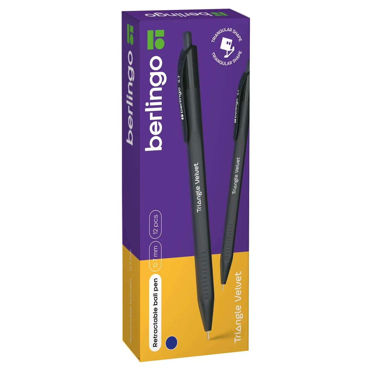 Шариковая ручка автоматическая Berlingo Triangle Velvet синяя, 0.7мм, черный корпус, одноразовая