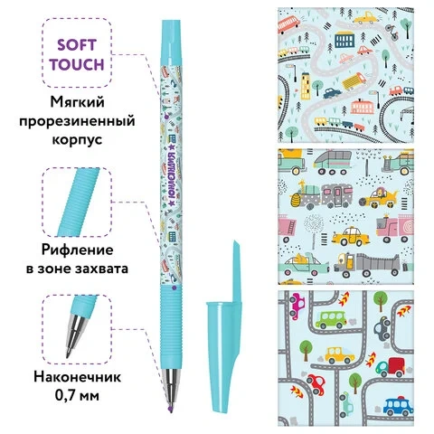 Ручка шариковая Юнландия Cars синяя, 0.35мм, корпус ассорти