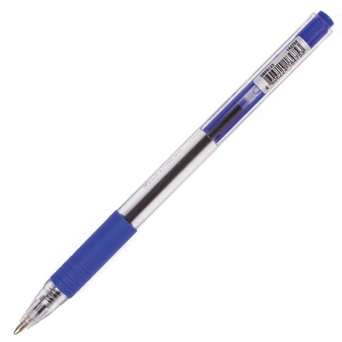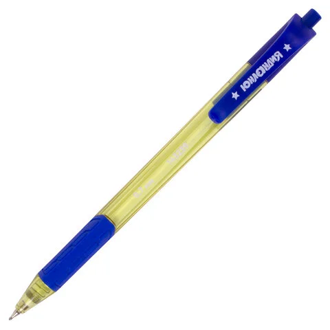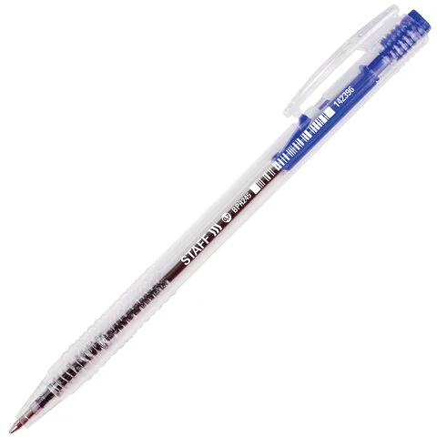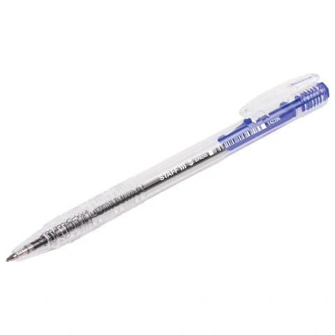 Шариковая ручка автоматическая Staff синяя, 0.35мм, прозрачный корпус