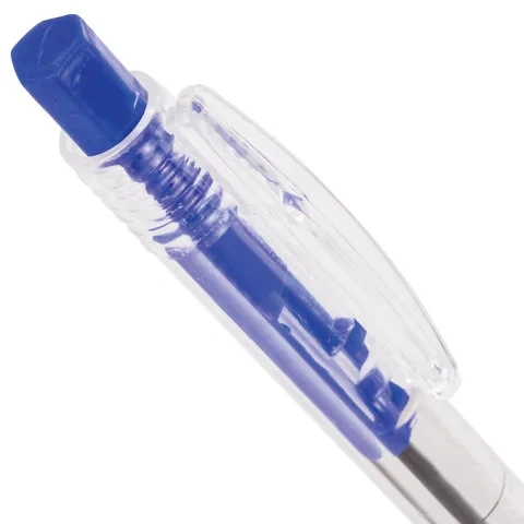 Шариковая ручка автоматическая Brauberg Click синяя, 1мм, масляная основа, прозрачный корпус