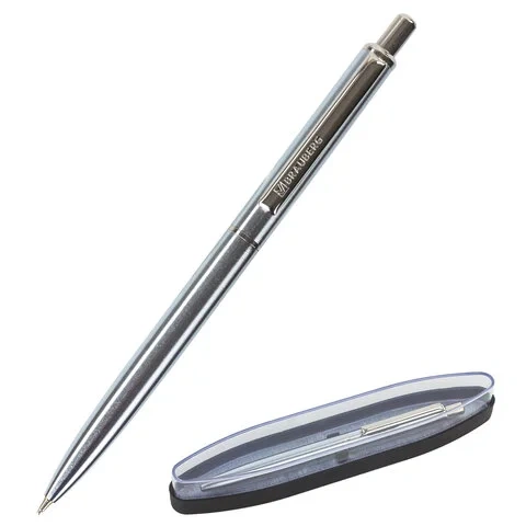Шариковая ручка автоматическая Brauberg Larghetto синяя, 0.5мм, корпус серебристый с хром деталями