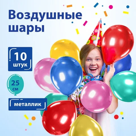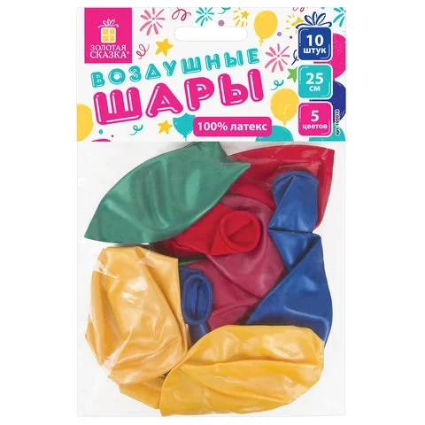 Шары воздушные ЗОЛОТАЯ СКАЗКА, 10' (25 см), КОМПЛЕКТ 10 штук, металлик, ассорти 5 цветов, пакет, 105