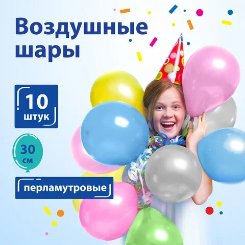 Шары воздушные ЗОЛОТАЯ СКАЗКА, 12' (30 см), КОМПЛЕКТ 10 штук, перламутровые, ассорти 5 цветов, пакет