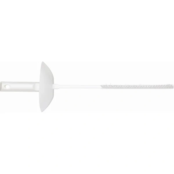 Щетка предназначена для чистки ножей ломтерезок, измельчителей мяса и другого измельчительно-режущего оборудования. Она имеет только один ряд ворса, который хорошо проникает между ножами. Защитная чашеобразная гарда предохраняет руку оператора от порезов. Если использовать эту щетку, разбирать оборудование не нужно.
