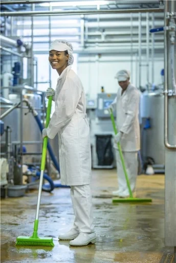 Щетка имеет жесткий ворс. Длина ворса идеально подходит для мытья любых типов покрытий полов: эпоксидного, кафельного, цементного и т.д. Хорошо вычищает грязь на неровных поверхностях.
