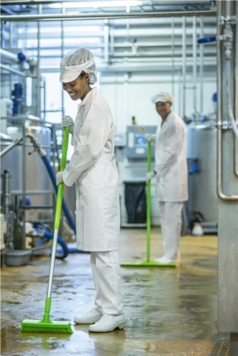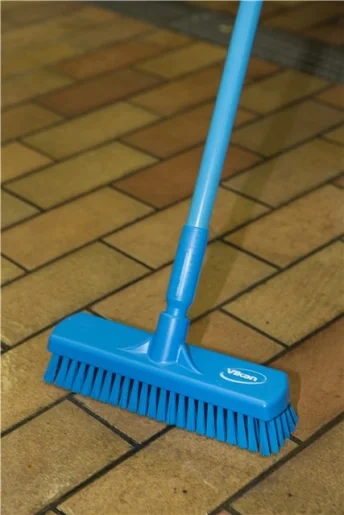 Щетка имеет жесткий ворс. Длина ворса идеально подходит для мытья любых типов покрытий полов: эпоксидного, кафельного, цементного и т.д. Хорошо вычищает грязь на неровных поверхностях.