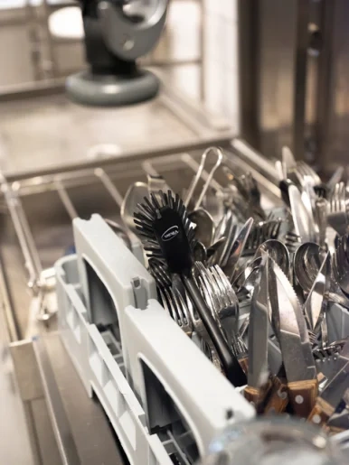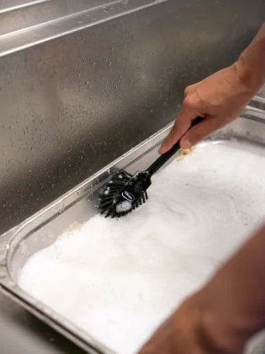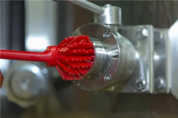 Ворс на щетке расположен под углом. Хорошо удаляет грязь в углах. Конец ручки заострен так, что им можно удалять налипшую грязь. Благодаря удобной ручке рука оператора находится в правильном эргономичном положении.