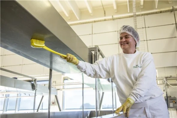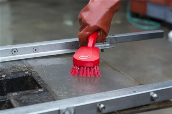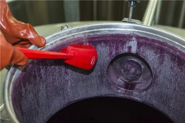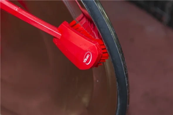 Длинная ручка этой щетки позволяет добраться до самых труднодоступных участков оборудования. Расположенный под углом ворс средней жесткости хорошо моет глубокие ведра, контейнеры, бочки и т.д.