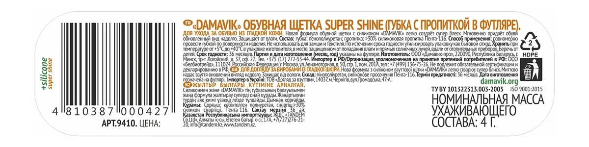 Щетка для обуви Damavik Super Shine бесцветная, 42г