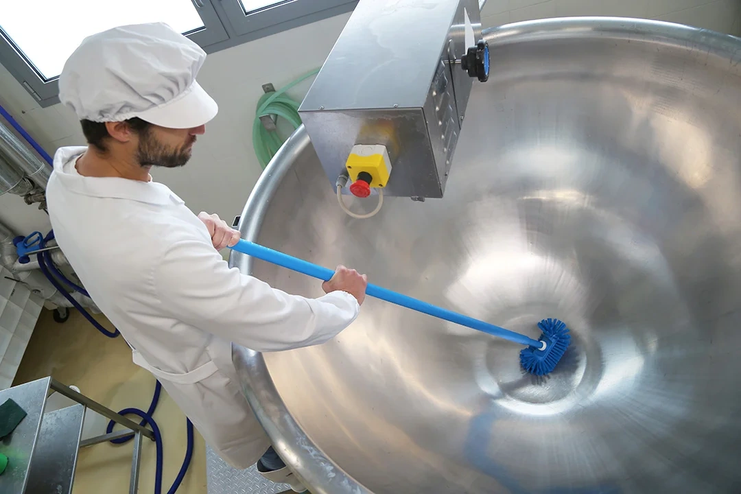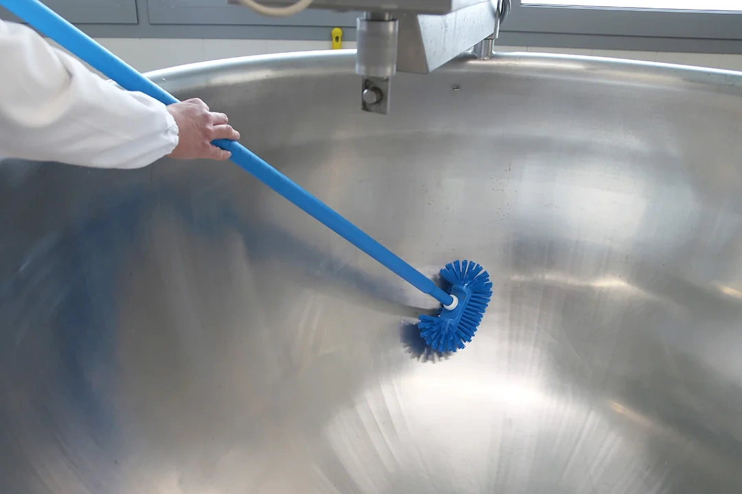 Круглая форма щетки идеально подходит для чистки полостей, изогнутых сковород и углублений под краями.