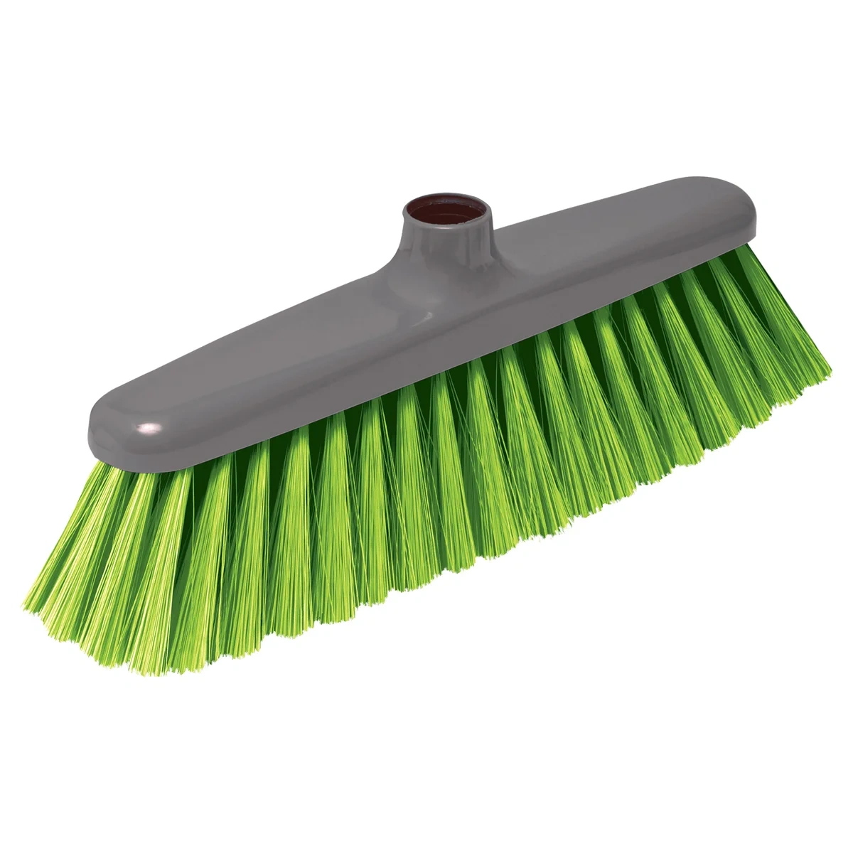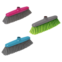 Классическая щетка для уборки помещений. Щетина расположена под углом, что позволяет захватывать максимальную площадь подметаемой поверхности, и имеет оптимальную жесткость для комфортного сбора пыли и мусора. Состав: полипропилен, щетина ПЕТ, сталь.