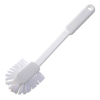 Щетка модели 138 предназначена для механического удаления остатков пищи перед установкой посуды в промышленную посудомоечную машину, а также может применяться для ручного мытья посуды. Короткий (20 мм.) ворс средней жесткости хорошо удаляет как свежие, так и немного присохшие заргязнения, а длинная ручка защищает руки от контакта с горячей водой.