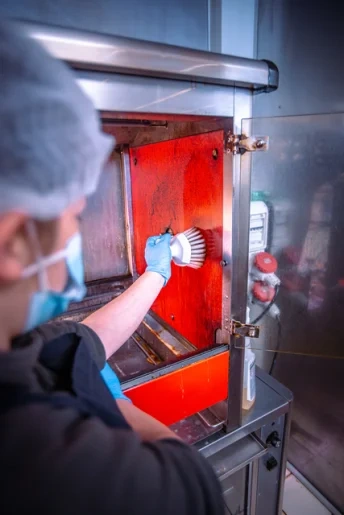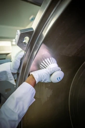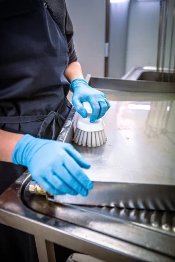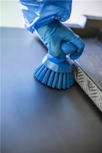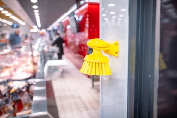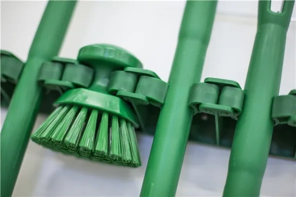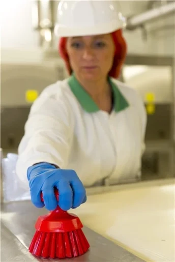 Высокая ручка предохраняет руку оператора от контакта с поверхностями и химикатами. Щетку можно использовать для чистки внутренних деталей оборудования, где точка входа соответствует размеру руки. Прекрасно подходит для чистки коробчатой тары, где требуется очистка в углах.