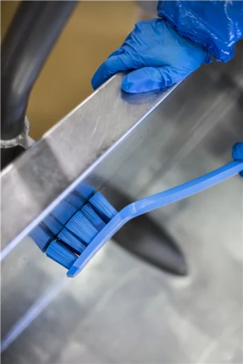 Щетка Ultra Safe Technology с длинной ручкой и жестким ворсом.