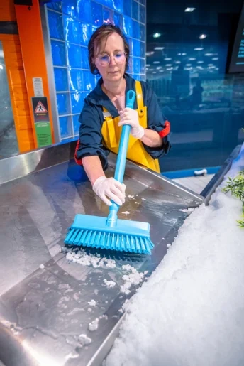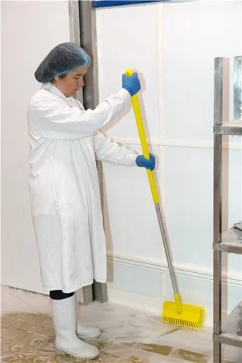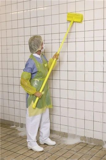 Эффективно очищайте и отскребайте стыки пола со стенами, а также под машинами и оборудованием с помощью этой щетки High-Low. Оснащенная изогнутой щетиной, она позволяет использовать щетку с ручкой, расположенной параллельно полу.