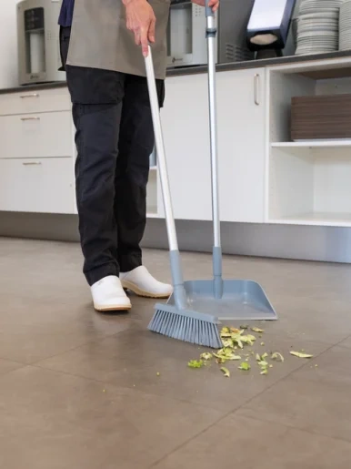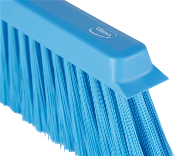 Легкая и особо эффективная щетка для подметания как сухого, так и влажного мусора. В рисунке ворса используются щетинки двух разных диаметров. Внешний ряд щетинок состоит из более мягкого ворса, чем средний, что позволяет не пропустить ни соринки. Ворс у края-скребка расположен под углом, что позволяет выметать мусор у самой стены и из углов, а также из-под рабочих столов и т.д. В конструкции предусмотрен эффективный край-скребок для оттирания с поверхностей присохшей грязи.