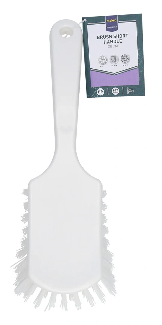 Щетка с ручкой METRO PROFESSIONAL Haccper белая обладает неограниченным сроком хранения. Корпус инвентаря сделан на основе полиэфирного материала, обладающего повышенной прочностью и жесткостью. В результате он выдерживает падения и прочие механические воздействия. Щетка предусматривает комфортное использование. Она эргономичная, в ее короткой ручке продуманы специальные выемки под пальцы, чтобы надежно удерживать модель и реже ронять. Основная зона инструмента сделана немного изогнутой, поэтому им легко пользоваться при чистке рабочих поверхностей, различного, в том числе профессионального оборудования. Важно, что ручная щетка оснащается жестким ворсом, который хорошо проникает в каждую щель. Это увеличивает эффективность по удалению загрязнений.