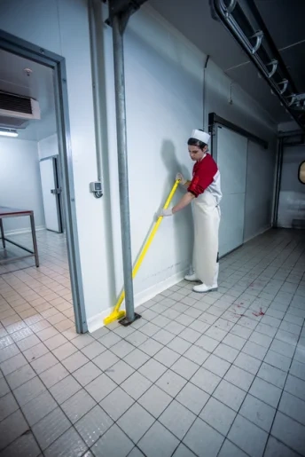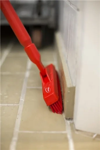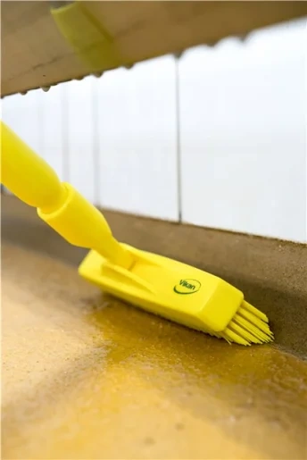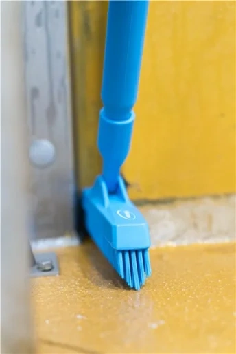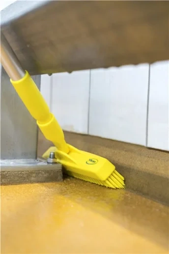 Скраб-щетка для чистки щелей идеально подходит для чистки труднодоступных мест под и между оборудованием, так как ручка может быть расположена параллельно полу.