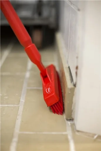 Скраб-щетка для чистки щелей идеально подходит для чистки труднодоступных мест под и между оборудованием, так как ручка может быть расположена параллельно полу.