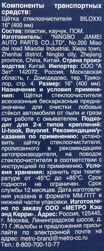 | Комплектация | щетка стеклоочистителя - 1 шт. |
