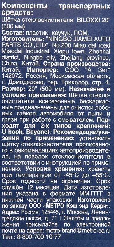 | Комплектация | щетка стеклоочистителя - 1 шт. |