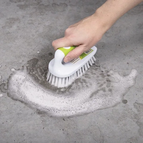 Эргономичная ручка длиной 13 см с антискользящими вставками обеспичивает удобство в применении. Жесткая щетина изготовлена из полипропилена. Щетка из пластика. Размер - 8,5х6,5х15 см. Цвет - комбинация зеленого и белого.