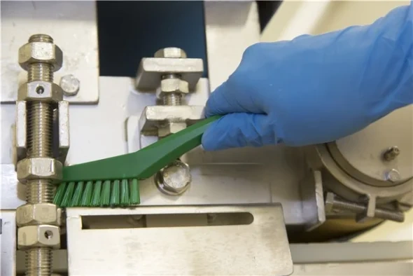 Небольшая компактная ручная щетка предназначена для чистки резиновых прокладок соединений, резиновых уплотнителей оборудования и конвейерных лент.