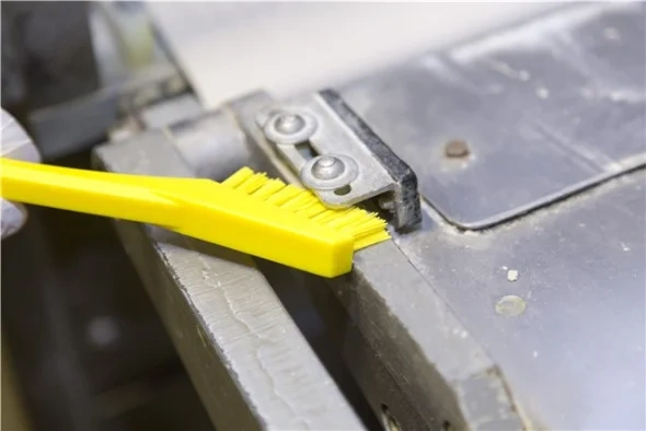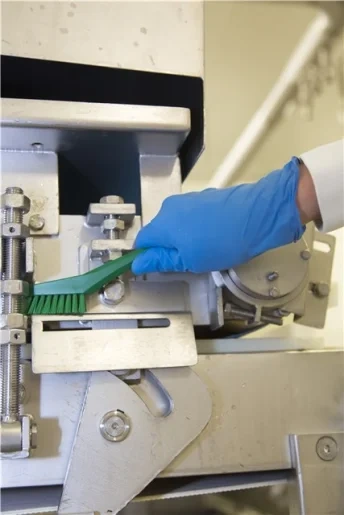 Небольшая компактная ручная щетка предназначена для чистки резиновых прокладок соединений, резиновых уплотнителей оборудования и конвейерных лент.