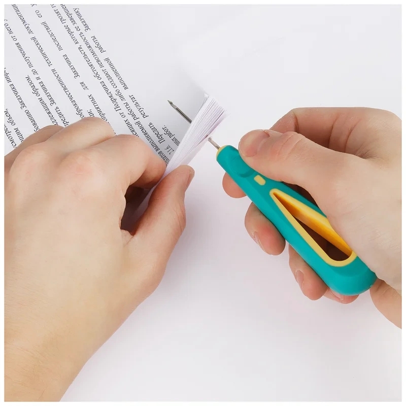 Канцелярское шило используется для прошивки документов и прокалывания бумаги. Оснащено крючком. Пластиковая прорезиненная рукоятка (составная, зеленый + желтый). Диаметр иглы 2 мм, длина иглы 40 мм, никелированное покрытие. Общая длина 140 мм, обеспечивает прокалывание до 30 листов бумаги.